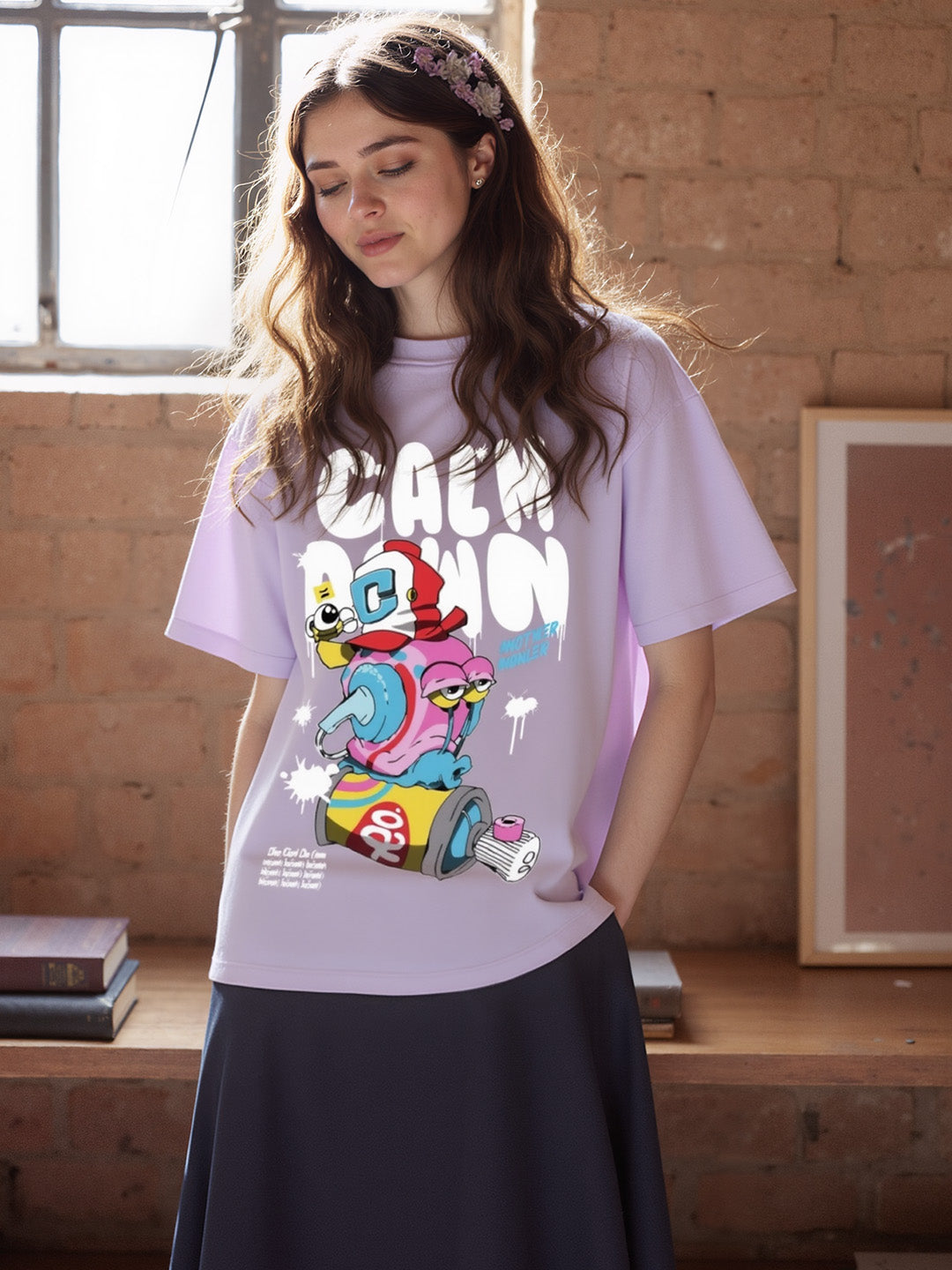 Calm Down Printed Pure Cotton Oversized T-shirt