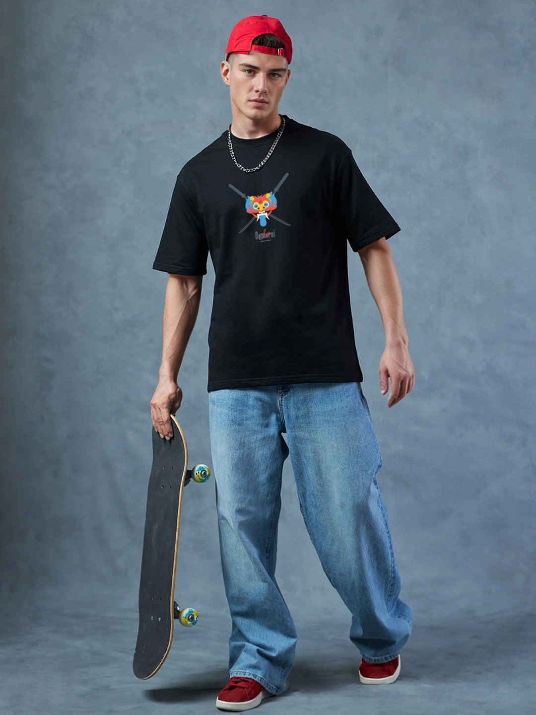 Elevate Printed Pure Cotton Oversized Black T-shirt