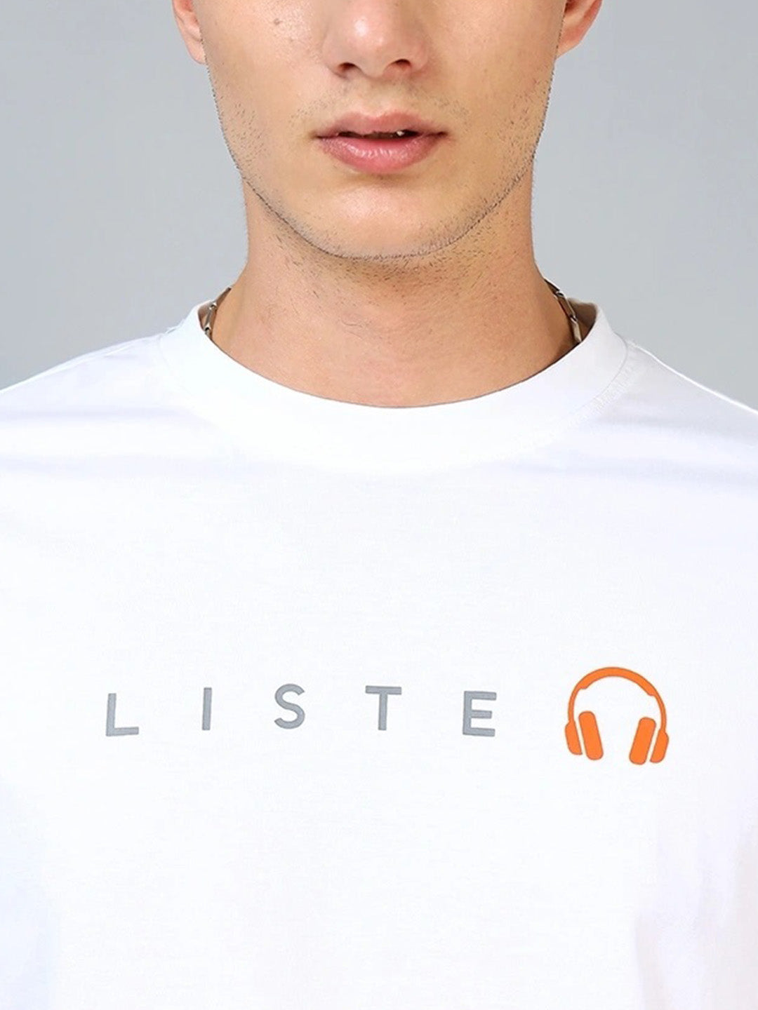 Keep Listening Printed Pure Cotton Oversized White T-shirt