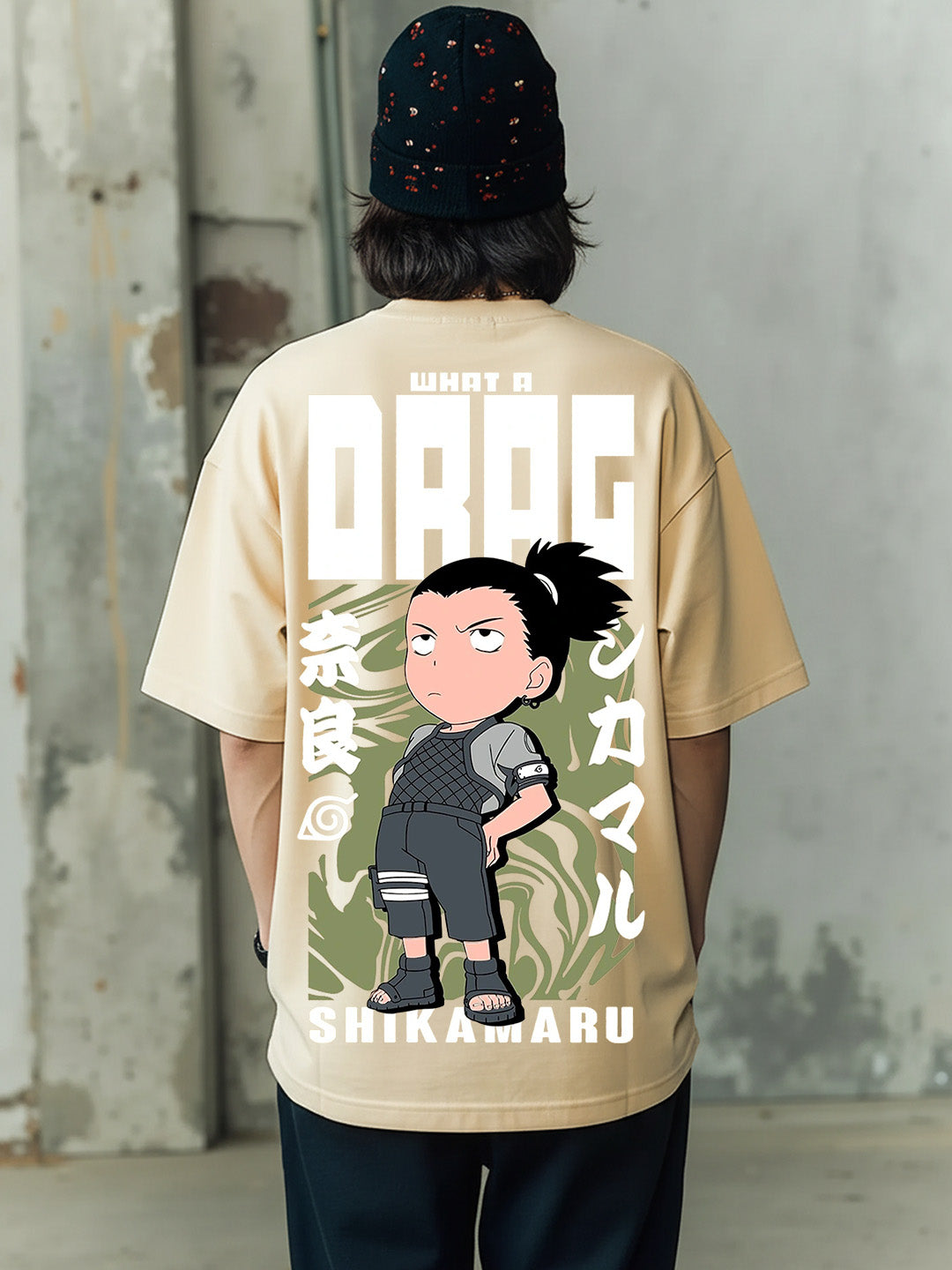 Shikamaru Drag - Ninja Printed Pure Cotton Oversized Beige T-shirt
